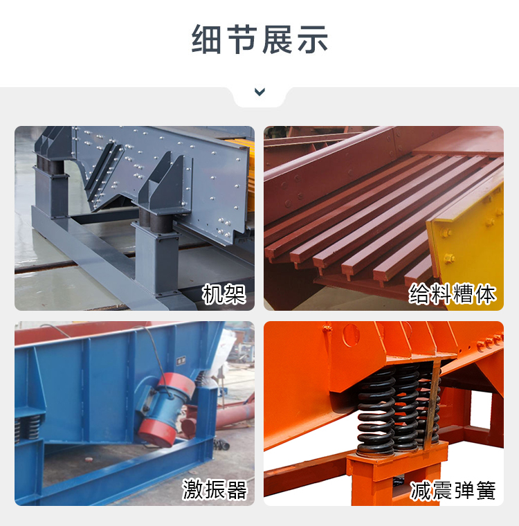 ZSW系列振動給料機(jī)主要用于粗碎破碎機(jī)前連續(xù)、均勻給料,同時可篩分細(xì)料,使破碎機(jī)能力增大。該機(jī)采用雙偏心軸激振器的結(jié)構(gòu)特點(diǎn),使設(shè)備能夠承受住大塊物料下落的沖擊,給料能力大。在生產(chǎn)流程中可以把塊狀、顆粒狀物料從貯料倉中均勻、定時、連續(xù)地送到受料裝置中去,從而防止受料裝置因進(jìn)料不均而產(chǎn)生死機(jī)的現(xiàn)象,延長了設(shè)備使用壽命。可分為鋼板結(jié)構(gòu)和篦條結(jié)構(gòu)兩種,鋼板結(jié)構(gòu)的給料機(jī)多用于砂石料生產(chǎn)線,將物料全部均勻地送入破碎設(shè)備;篦條結(jié)構(gòu)的給料機(jī)可對物料進(jìn)行粗篩分,使系統(tǒng)在配制上更經(jīng)濟(jì)合理,在破碎篩分中已作為必不可少的設(shè)備。