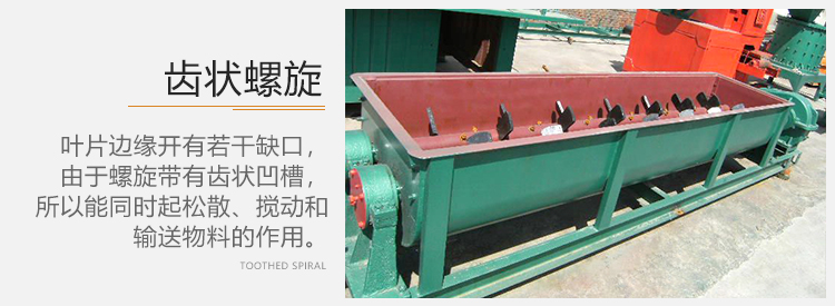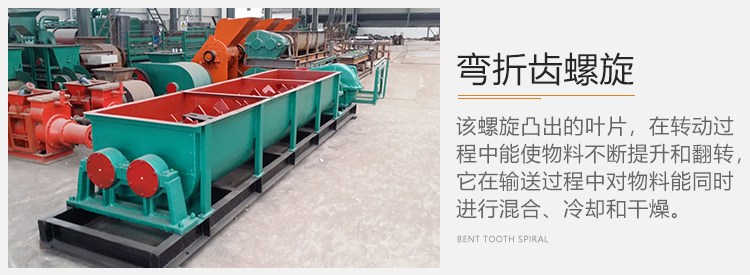 4)彎折齒螺旋,該螺旋凸出的葉片,在轉(zhuǎn)動(dòng)過程中能使物料不斷提升和翻轉(zhuǎn),它在輸送過程中對(duì)物料能同時(shí)進(jìn)行混合、冷卻和干燥。